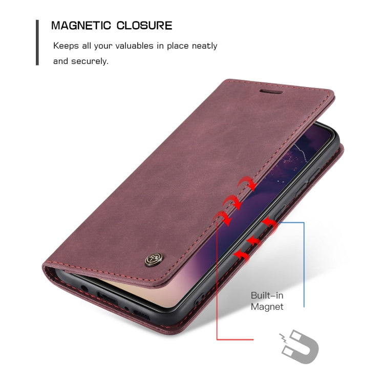 For Samsung Galaxy A41 CaseMe-013 Multifunctional Retro Frosted Horizontal Flip Leather Case with Card Slot & Holder & Wallet(Wine Red)