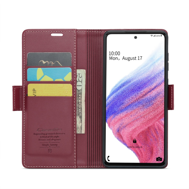 For Samsung Galaxy A53 CaseMe 023 Butterfly Buckle Litchi Texture RFID Anti-theft Leather Phone Case(Wine Red)