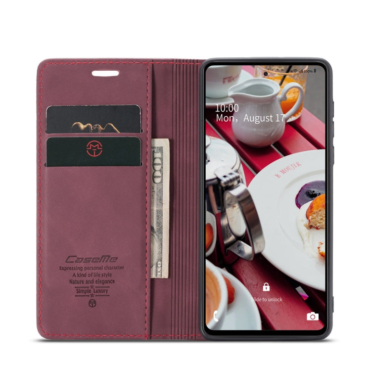 For Samsung Galaxy A73 5G CaseMe 013 Multifunctional Horizontal Flip Leather Phone Case(Wine Red)