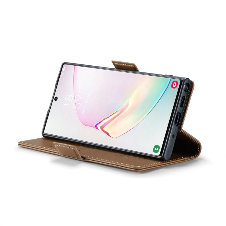 For Samsung Galaxy Note10+ CaseMe 023 Butterfly Buckle Litchi Texture RFID Anti-theft Leather Phone Case(Brown)