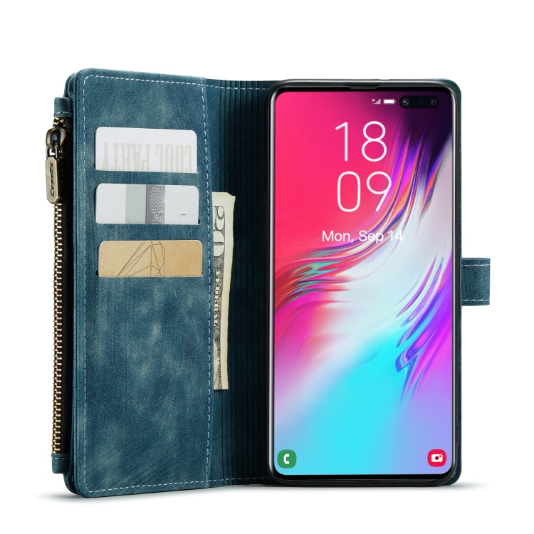 For Samsung Galaxy S10+ CaseMe-C30 PU + TPU Multifunctional Horizontal Flip Leather Case with Holder & Card Slot & Wallet & Zipper Pocket(Blue)