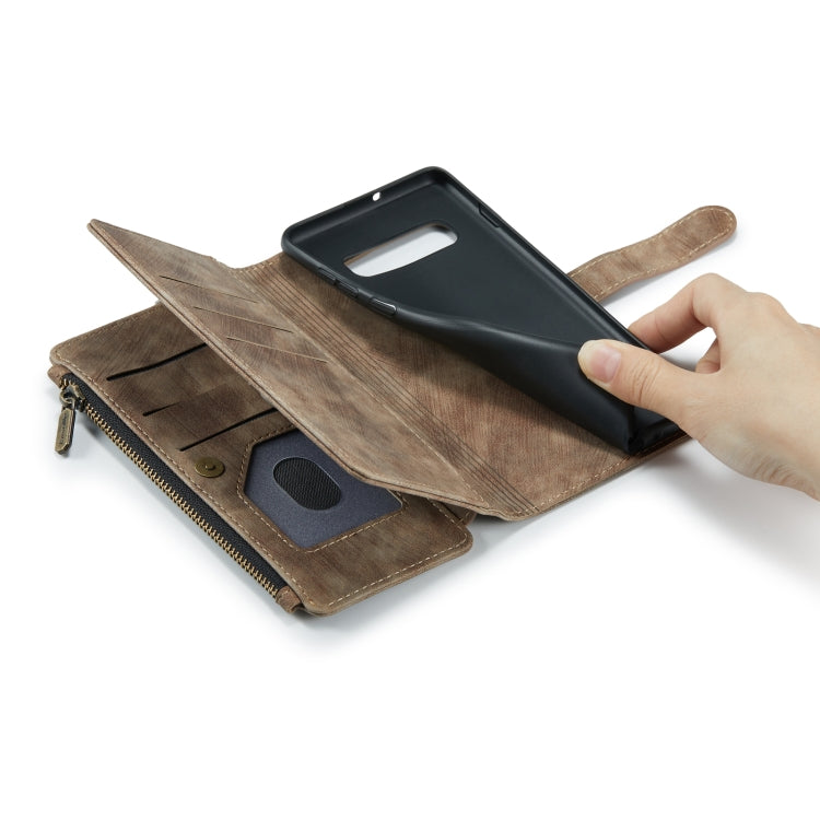For Samsung Galaxy S10 CaseMe-C30 PU + TPU Multifunctional Horizontal Flip Leather Case with Holder & Card Slot & Wallet & Zipper Pocket(Brown)