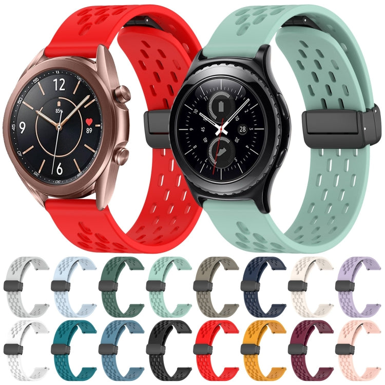 For Samsung Galaxy Watch3 41mm 20mm Folding Magnetic Clasp Silicone Watch Band(Light Blue)