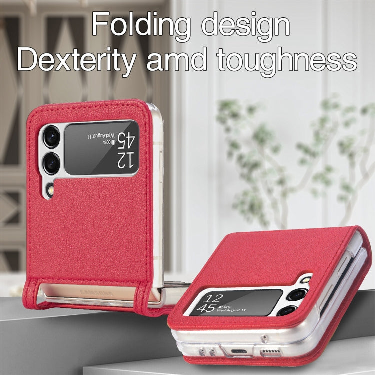 For Samsung Galaxy Z Flip3 5G Litchi Pattern Folding Leather Shockproof Card All-inclusive Case(Red)