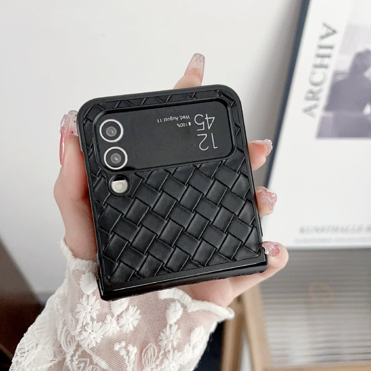 For Samsung Galaxy Z Flip3 Three-piece Set Woven Texture Folding PU Phone Case(Black)