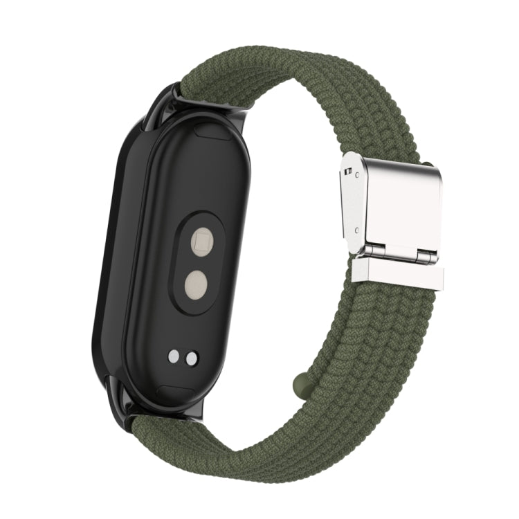 For Xiaomi Mi Band 8 / 8 NFC Metal Head + Nylon Braided Steel Buckle Watch Band(Dark Green)