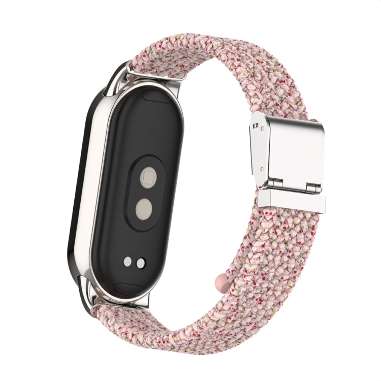 For Xiaomi Mi Band 8 / 8 NFC Metal Head + Nylon Braided Steel Buckle Watch Band(Starlight Pink)