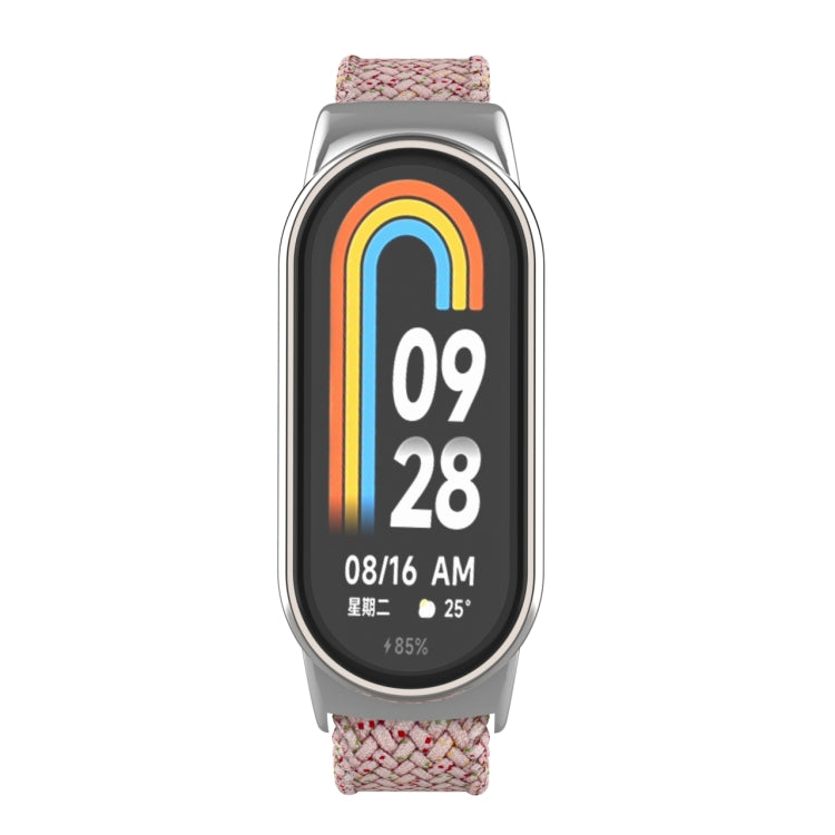 For Xiaomi Mi Band 8 Metal Head + Adjustable Nylon Braided Steel Buckle Watch Band(Starlight Pink)