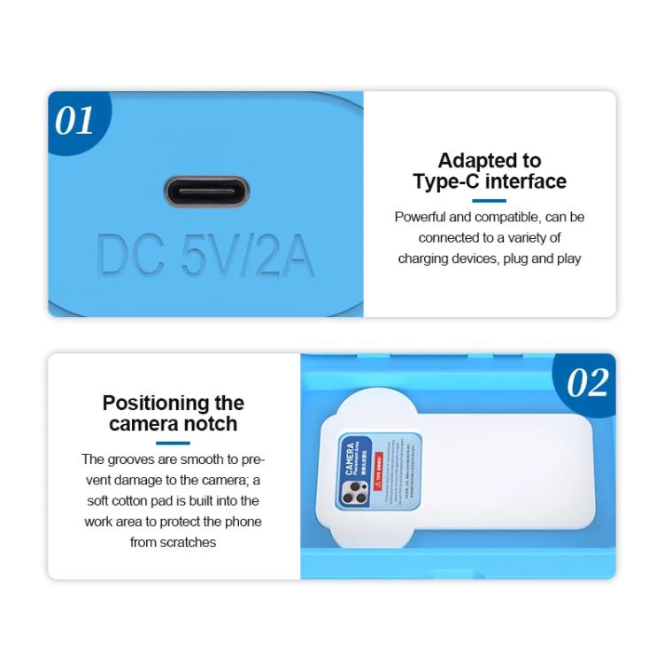 7. Positioning camera notch design, smooth to prevent damage to the camera, the work area built-in soft cotton pads to protect the phone to prevent scratching
