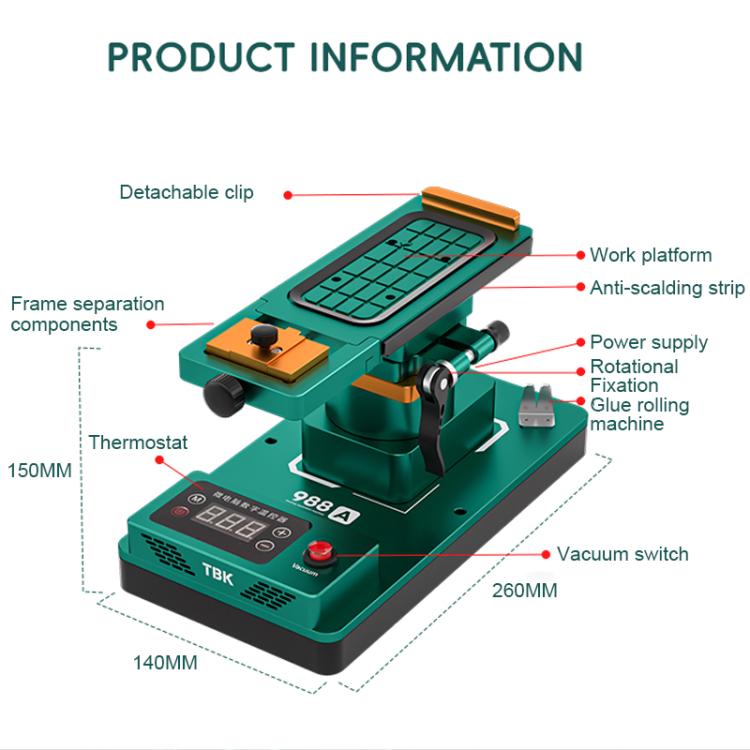 TBK 988A 360 Rotating Screen OCA Adhesive Removal Heating Separator, Plug:EU Plug